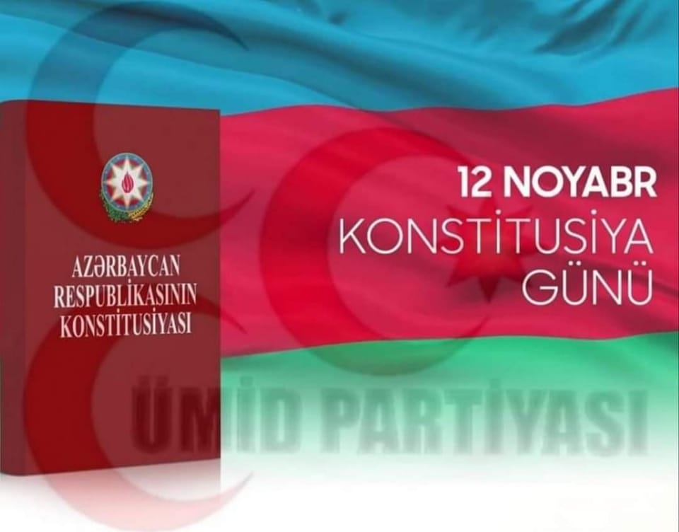 Azərbaycan Ümid Partiyasının sədri İqbal Ağa-zadə və partiyanın İdarə Heyəti Azərbaycan xalqını Konstitusiya Günü münasibətilə təbrik edir, xalqımıza şəffaf, demokratik cəmiyyətdə, məhkəməsi azad, insan haqları qorunmuş, sosial təminatlı bütövləşmiş Azərbaycanda yaşamağı arzulayır.