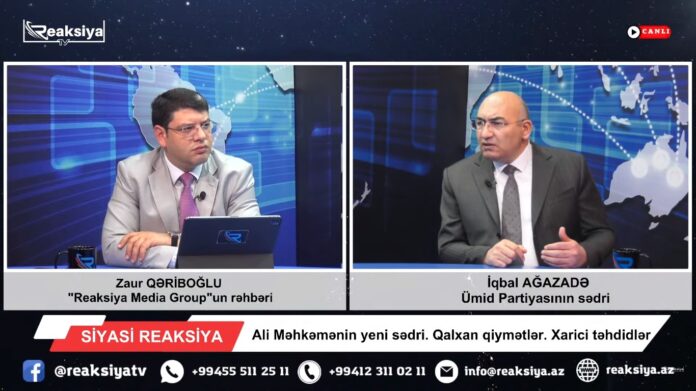 Ali Məhkəmənin yeni sədri. Qalxan qiymətlər. Xarici təhdidlər – İQBAL AĞAZADƏ ilə siyasi reaksiya 04 Aprel 2023 Ümid Partiyasının sədri İqbal Ağazadə 4 aprel 2023-cü il Zaur Qəriboğlunun təqdimatında Reaksiya Tv-də canlı efir qonağı olub. Sözügedən efiri izləyicilərə təqdim edirik: Şərh yaz