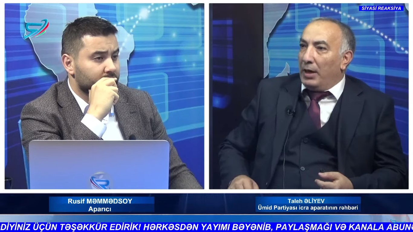 Ümid Partiyasının İcra Aparatının rəhbəri Taleh Əliyev Reaksiya Tv-də Rusif Məmmədsoyun təqdimatında canlı efir qonağı olub.