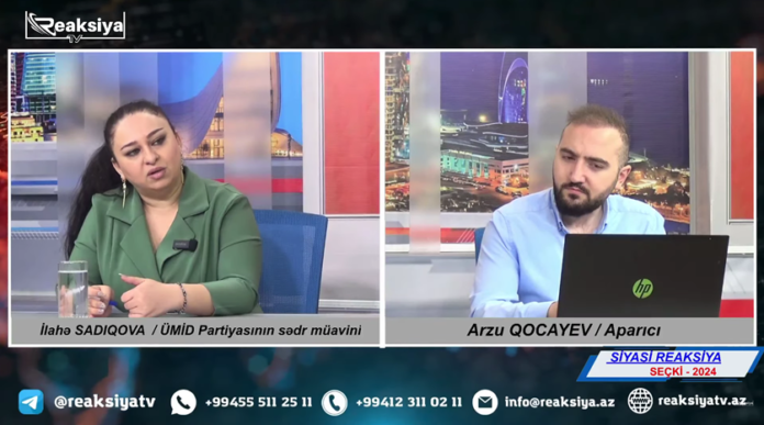 Azərbaycan Ümid Partiyası / Azerbaijan Umid Party -nın İdarə Heyətinin üzvü İlahə Sadıqova Reaksiya TV kanalında efir qonağı olub.