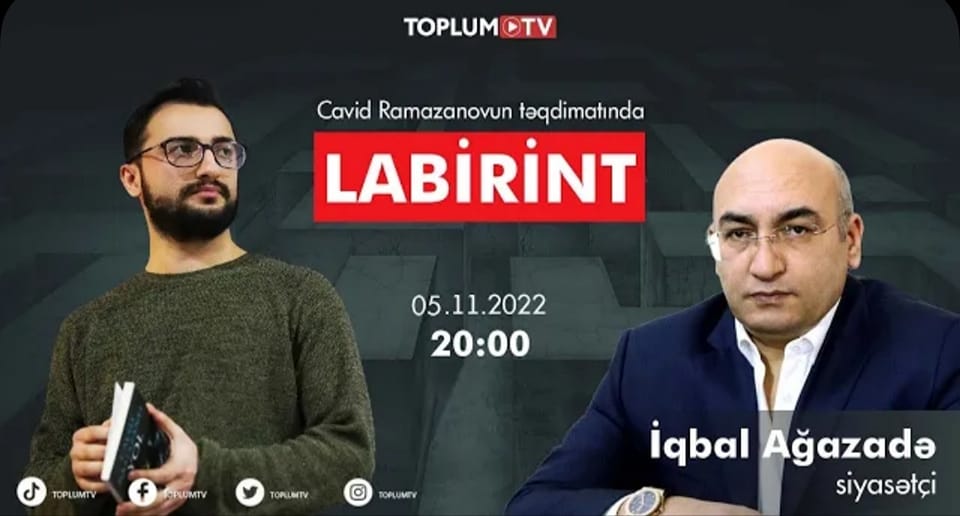 Ümid Partiyasının sədri İqbal Ağazadə 5 noyabr 2022-ci il Toplum TV – də Javid Ramazanovun təqdimatında “Labirint” verilişinin qonağı olub.