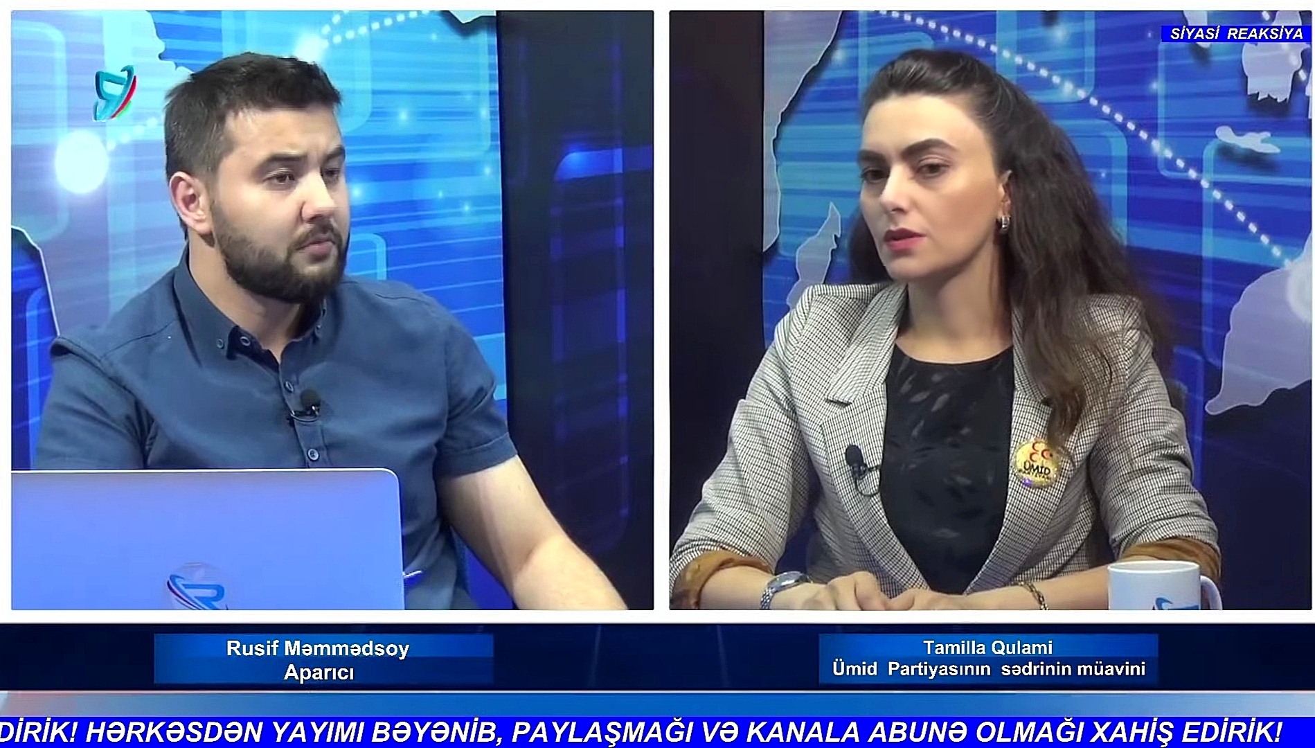 Ümid Partiyasının təbliğat və informasiya məsələləri üzrə sədr müavini Tamilla Qulami 20 iyul 2022-ci il Rusif Məmmədsoyun təqdimatında Reaksiya Tv-də canlı efir qonağı olub.