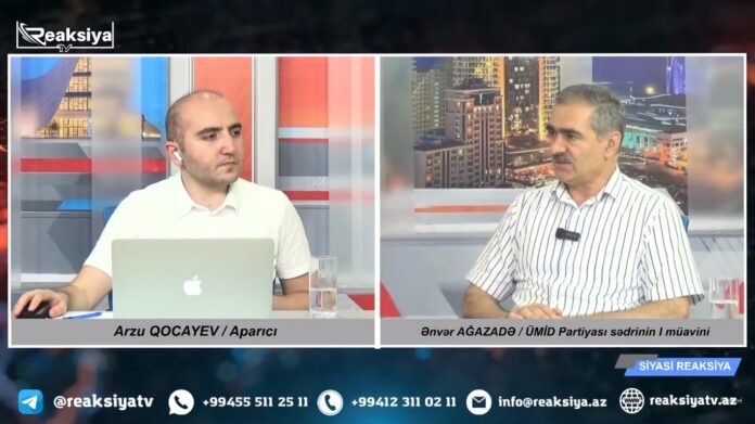 Azərbaycan Ümid Partiyası / Azerbaijan Umid Party sədrinin birinci müavini Ənvər Ağazadə 7 avqust 2023-cü il Reaksiya Tv-də Arzu Qocayevin təqdimatında canlı efir qonağı olub.