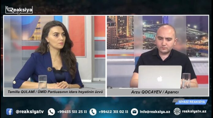 Azərbaycan Ümid Partiyası / Azerbaijan Umid Party – nın İdarə Heyətinin üzvü Tamilla Qulami 4 avqust 2023-cü il Arzu Qocayevin təqdimatında Reaksiya TV – də canlı efir qonağı olub.