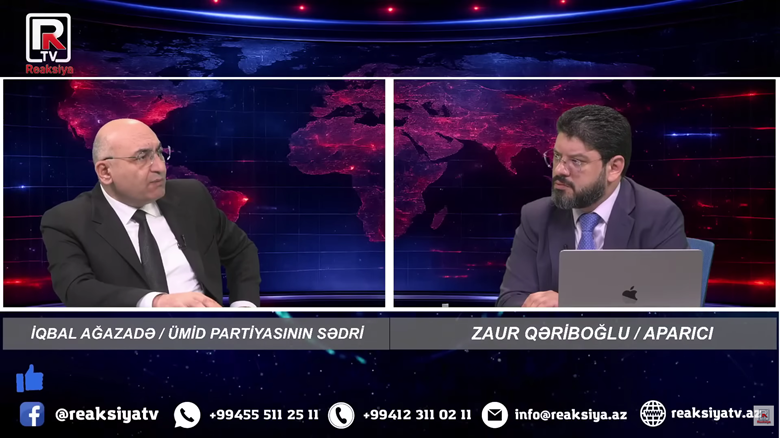 Azərbaycan Ümid Partiyasının sədri İqbal Ağazadə Reaksiya TV kanalında Zaur Qəriboğlunun təqdimatında 3 mart 2026-cı il canlı efir qonağı olub.
