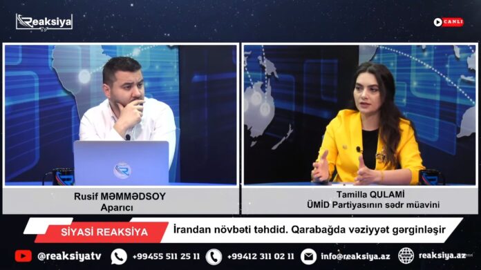 Azərbaycan Ümid Partiyası / Azerbaijan Umid Party – nın təbliğat və informasiya məsələləri üzrə sədr müavini Tamilla Qulami Rusif Məmmədsoyun təqdimatında Reaksiya TV – də canlı efir qonağı olub.