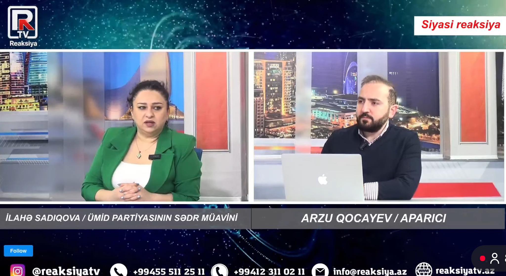 Azərbaycan Ümid Partiyası İdarə Heyətinin üzvü İlahə Sadıqova Reaksiya TV kanalında Arzu Qocayevin təqdimatında 5 fevral 2026 – cı il canlı efir qonağı olub.
