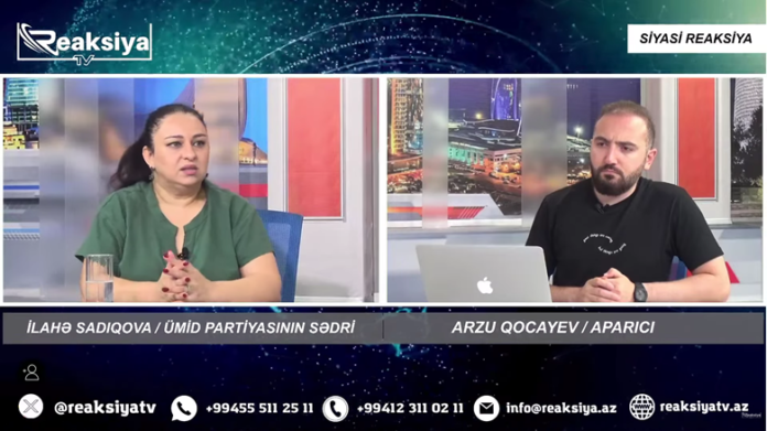 Azərbaycan Ümid Partiyasının İdarə Heyətinin üzvü İlahə Sadıqova Arzu Qocayevin təqdimatında 25 avqust 2025-ci il Reaksiya TV kanalında canlı efir qonağı olub.
