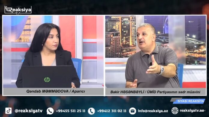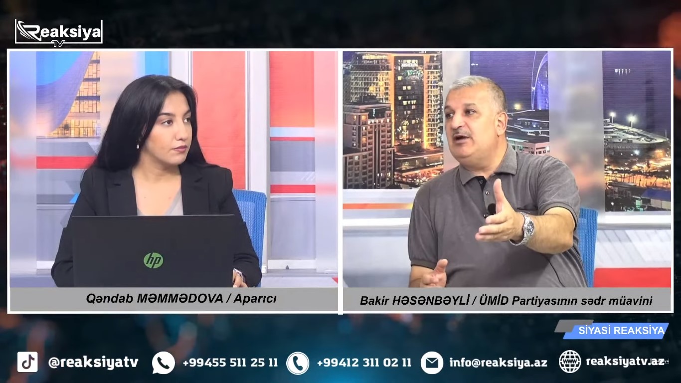 Şəriət məhkəməsi azərbaycanlı tələbəyə hökm oxudu – BAKİR HƏSƏNBƏYLİ şərh edir 18 Avqust 2023 Ümid Partiyasının İdarə Heyətinin üzvü Bakir Həsənbəyli 18 avqust 2023-cü il Reaksiya Tv-də canlı efir qonağı olub. Sözügedən efiri izləyicilərə təqdim edirik: Şərh yaz