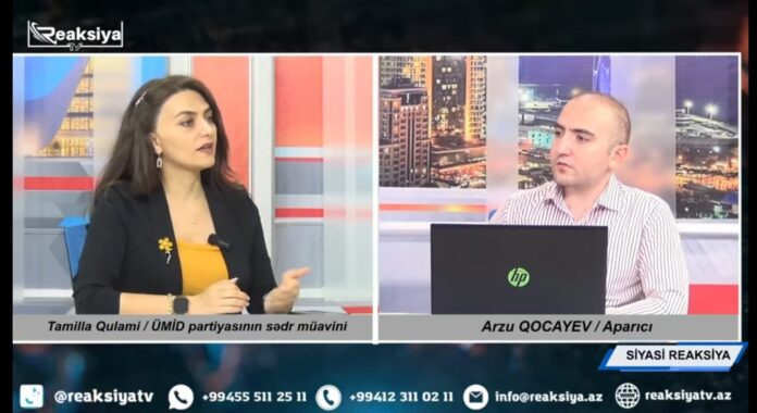 Azərbaycan Ümid Partiyası / Azerbaijan Umid Party – nın İdarə Heyətinin üzvü Tamilla Qulami 6 oktyabr 2023-cü il Reaksiya TV – də Arzu Qocayevin təqdimatında canlı efir qonağı olub.