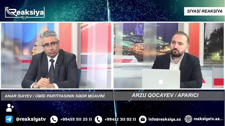Azərbaycan Ümid Partiyası İdarə Heyətinin üzvü Anar İsayev Reaksiya TV kanalında Arzu Qocayevin təqdimatında 13 noyabr 2025-ci il canlı efir qonağı olub.