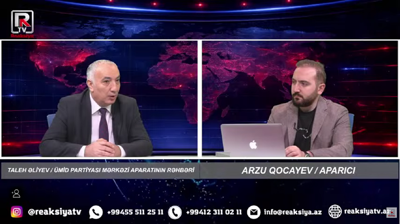 Azərbaycan Ümid Partiyasının Mərkəzi Aparatının rəhbəri Taleh Əliyev Arzu Qocayevin təqdimatında 4 mart 2026-cı il Reaksiya TV-də canlı efir qonağı olub.