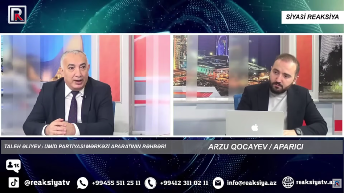 Azərbaycan Ümid Partiyası Mərkəzi Aparatının rəhbəri Taleh Əliyev Reaksiya TV kanalında Arzu Qocayevin təqdimatında 8 dekabr 2025-ci il canlı efir qonağı olub.