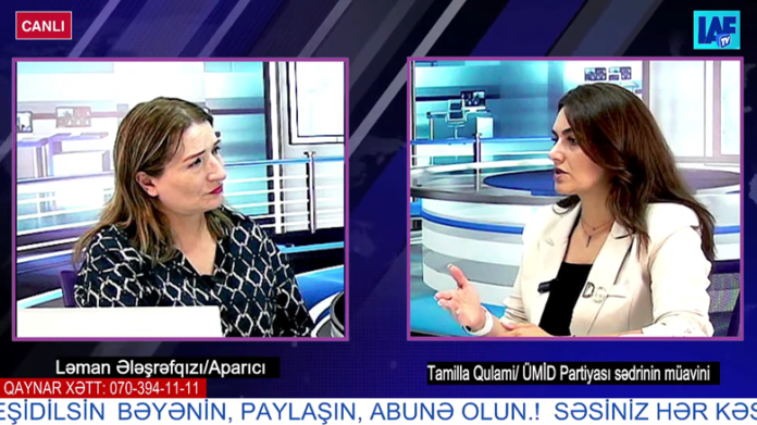 Azərbaycan Ümid Partiyası / Azerbaijan Umid Party İdarə Heyətinin üzvü Tamilla Qulami LAF TV kanalında Leman Eleşrefqızının təqdimatında 19 iyul 2024-cü il canlı efir qonağı olub.