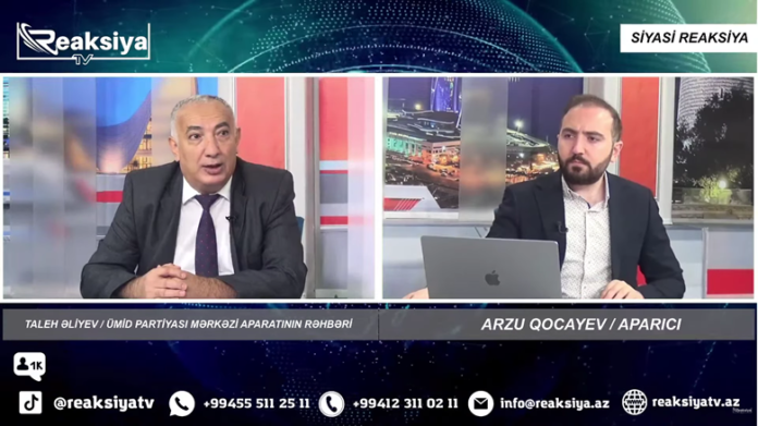 Azərbaycan Ümid Partiyasının Mərkəzi Aparatının rəhbəri Taleh Əliyev Reaksiya TV kanalında Arzu Qocayevin təqdimatında 22 sentyabr 2025-ci il canlı efir qonağı olub.