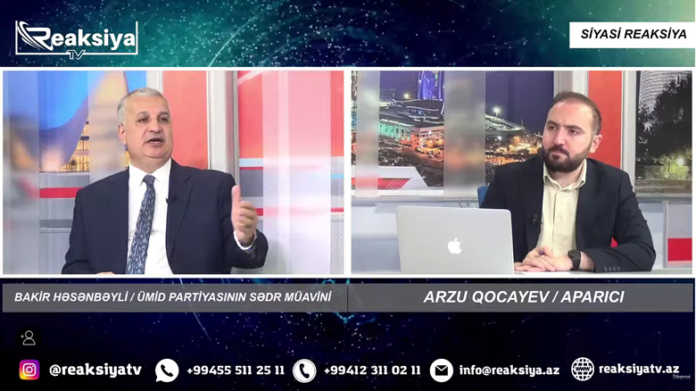 Azərbaycan Ümid Partiyası İdarə Heyətinin üzvü Bakir Həsənbəyli Reaksiya TV kanalında Arzu Qocayevin təqdimatında 13 oktyabr 2025-ci il canlı efir qonağı olub.