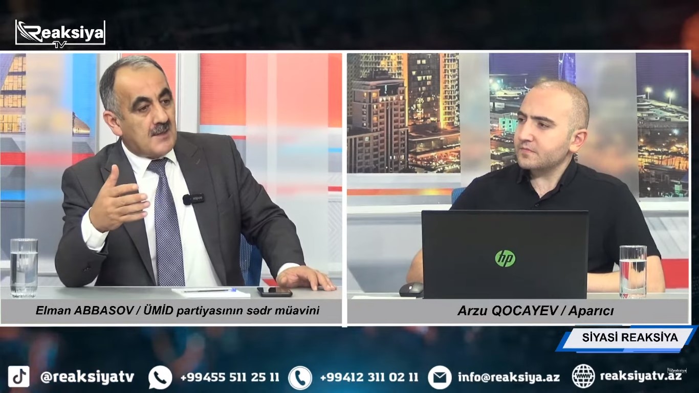 Azərbaycan Ümid Partiyası / Azerbaijan Umid Party – nın İdarə Heyətinin üzvü Elman Abbasov 2 oktyabr 2023-cü il Reaksiya Tv-də Arzu Qocayevin təqdimatında canlı efir qonağı olub.